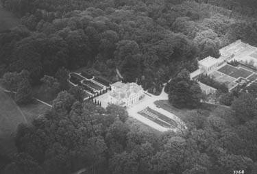 Mevrouw Yt Stoker van de Stichting was wel zo vriendelijk om nog een fotokopie van de kaart in kwestie mee te sturen. En inderdaad, het gebouw op de ansichtkaart vertoonde vrijwel geen enkele gelijkenis met het gebouw dat Caderius van Veen zo treffend had getekend. Maar die omgeving ... . Dat kon haast niet anders dan Warnsborn zijn! De oplossing van het raadsel kwam - o toeval - een week of twee later uit een volstrekt onverwachte hoek. De gemeentearchivaris van Arnhem, drs. P.R.A. van Iddekinge, die op de hoogte was mijn belangstelling voor onder meer de Schaarsbergse geschiedenis, bezorgde mij eind 1944 een afdruk van een luchtfoto van het vooroorlogse hotel Groot Warnsborn! En wat bleek?