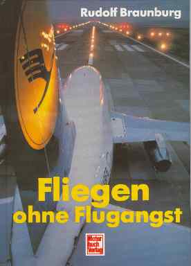 In woord en beeld droeg Rudolf Braunburg bij aan de bestrijding van vliegangst, die zovelen het plezier van een vliegreis bederft; links het omslag van zijn boek over dat onderwerp, rechts een opname in de WDR studio voor een uitzending daarover