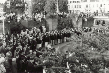 This retreat, codenamed Operation Berlin, took place on the night of 26 September 1944. Of the more than 10,000 troops of 1st Airborne Division which had been deployed, only about 2,500 came back. The others were either killed in action or were rounded up, many of them wounded, and became prisoners of war. The Arnhem part of Operation Market Garden was a total failure, and went into the history books as the Battle of Arnhem. The 30th Army Corps' push forward finally ground to a halt at Elst, a small village seven kilometres south of Arnhem. And the liberation which the Corps brought in its wake also stopped there. The area between Nijmegen and Arnhem became a no man's land; the Germans flooded it in December 1944 by breaking a dike on the Lower Rhine. Arnhem became a front-line city. The population of this badly battered city and that of equally afflicted Oosterbeek was forced to evacuate. The long cold winter which followed brought much suffering to this occupied part of the Netherlands. Fuel became almost completely unavailable and the resulting lack of transport capacity contributed to the total breakdown of food distribution. This winter of starvation claimed many victims, especially in the densely populated west of the Netherlands. It goes without saying that the brave but hopeless fight put up by the British and Polish soldiers left an ineradicable impression on the Iocals, who watched these bringers of hope being defeated in the space of a few days. Immediately after the liberation, the building of a military cemetery was begun in Oosterbeek. The Renkum council provided the land. The first service of Commemoration for those who fell was held there as early as September 1945. It was to be the beginning of an unique tradition: a commemoration stretching over several days, where the population of Arnhem and the surrounding areas, veterans and relatives of those who died, come together each year to honour the Allied soldiers who fell at the Battle of Arnhem. It also goes without saying, that the many veterans present are welcomed and hospitably entertained during their stay by just as many families in the region. Strong ties of friendship have grown between them over the years. Here, as in all the other areas involved in Operation Market Garden, the Battle of Arnhem was commemorated on a large scale in September 1994 and will be on a smaller scale in 2004. But the Arnhem commemoration is different from, say, that of Eindhoven or Nijmegen, cities which, at the time, were able to welcome their liberators. There the emphasis was upon celebration, while in Arnhem it remained upon commemoration. And not only during those days in September, but all year round, as is apparent from the steady flow of visitors to the Airborne Cemetery and Airborne Museum in Oosterbeek and a number of other places where memories of the Battle of Arnhem are still strong.