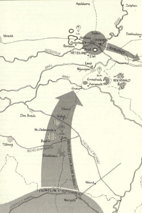 Arnhem: a medium-sized city in the heart of the Netherlands. The capital of Gelderland, the largest province, Arnhem is famous for its many parks and places of interest, same of which, such as the Burgers' Zoo, the Dutch Open-Air Museum and the Hoge Veluwe National Park with its Kröller-Müller Museum, are of international renown. But what made this provincial capitaI on the Rhine into an international household name was, above all, the dramatic conflict that took place there in September 1944: the BattIe of Arnhem. With the German troops in France retreating in disarray before his divisions and no longer offering any significant resistance, Field Marshal Montgomery thought there might be a chance of forcing Nazi Germany to surrender before the onset of winter. Working under extreme pressure, his staff produced a number of plans for a final offensive. Plans which were rapidly overtaken by the stormy developments of the following days, before there could be any thought of carrying them out. The Allies' advance ground to a halt in the north of Belgium on about 4 September 1944 because of difficulties with the supply of fuel. Precious time was lost. On 8 September, the Germans launched their first V2 rocket on London from the west of the Netherlands. Under these circumstances, Monty's plans for a bold attack took shape more and more clearly. The 30th Army Corps was to advance north from its bridgehead near Neerpelt in Belgium into the Netherlands along a line stretching from Eindhoven through Nijmegen and on to Arnhem. The main army would then turn eastwards and invade Germany.