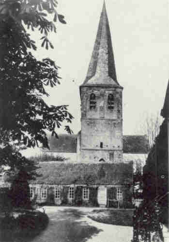 A last stand was made at this church to cover the withdrawal across the Rhine, aldus de tekst op deze herinneringszuil bij de kerk