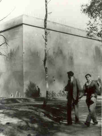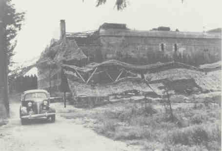 Links Diogenes omstreeks 1955, rechts de tweelingbunker Gyges bij Grove in Denemarken direct na de oorlog. Goed te zien is, hoe de Duitsers met camouflagenetten poogden de contouren van het enorme gebouw nog enigszins te verhullen