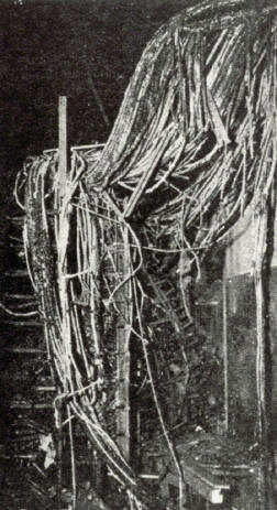 Verwarde bossen kabels zijn na de verwoesting van het interieur van Diogenes de stille getuigen die erop wijzen, dat hier een belangwekkend communicatiecentrum was gevestigd