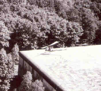 Een Hiller OH-23C 'Raven' op het dak van de bunker (noord-westhoek)