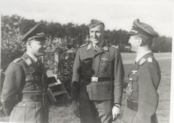 Vlnr. Generalmajor Josef Kammhuber, Oberfeldwebel Beyer en Major Wolfgang Falck. De foto werd gemaakt ter gelegenheid van de verlening van het Ritterkreuz aan Beyer (oktober 1941)