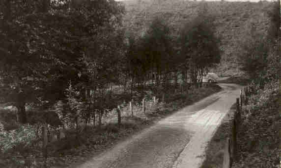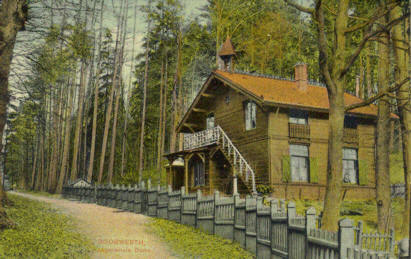 Aan het eind van het pad dalen we af naar de Fonteinallee. We gaan hier rechts af en houden bij de kruising met de Dunolaan links aan. We passeren dan eerst het lieve huisje in cottage stijl, weldra gevolgd door een oud tolhuisje.