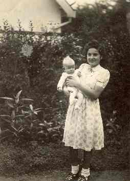 Augustus 1944, Rosalie met Willem op de arm, achter het huis Kemperbergerweg 35