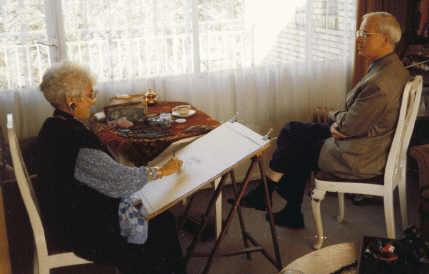 Rosalie was bijzonder verrast door een perfecte kleurenkopie van haar tekening uit 1944; ze wist zich met geen mogelijkheid meer te herinneren die ooit te hebben gemaakt! Het is intussen wel de oudst bewaard gebleven portrettekening van haar hand.