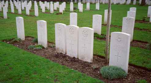 The wreckage lay burning for many hours, with continuous explosions of ammunition which made it impossible to get close. Once the fire had died down, Mr. Schouten, another farmer, went to have a look. "I saw three bodies in the aircraft and when I looked in the field, I found another three, one of which lay in a ditch under a parachute. In daylight on the following morning I found another parachute which was completely open. There was no one near it so I assumed that the person who used it had landed weIl and escaped from the Germans." The Germans did not want the bodies recovered immediately so that they remained at the crash site for several days. The bodies were finally removed in four coffins on Tuesday 20th. June. One coffin contained the remains of three crew members, although three grave numbers we re reserved for it. Normally, the removal and burial of bodies was quickly and efficiently carried out by the Germans and it may be that in this case the delay lay in the village of Elden, where, to the displeasure of many parishioners, Pastor Schimmel refused to give permission for the dead airmen to be buried in 'his' churchyard. He had taken his decision on the grounds that only those people who had been christened as Roman Catholics could be buried in ground which had been consecrated as a burial place for Roman Catholics. It was eventually decided that the airmen were to be buried in the cemetery of the Netherlands Reformed Church in Huissensedijk. Not long afterwards, Pastor Schimmel's replacement, Father Van Vugt also refused to bury a body, this time of a German who according to his papers was an 'Evangelist'. In the end the German was also buried at the Reformed Church. Not too much notice was taken of this incident, because it involved a German, and because the battle of Arnhem had started and people had other things to think about. A local joiner called Alberts made an aok cross for each of the airmens' graves and the people of Elden collected money for the upkeep of each grave, and placed flowers on them.