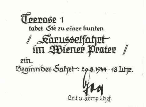 Een uitvoering in de voormalige hangar van de Arnhemsche Zweefvliegclub, toen 'stellingstheater' van Teerose I en de uitnodiging die Unteroffizier Josef Pelzer, die in de bunker Diogenes in Schaarsbergen werkte, ontving