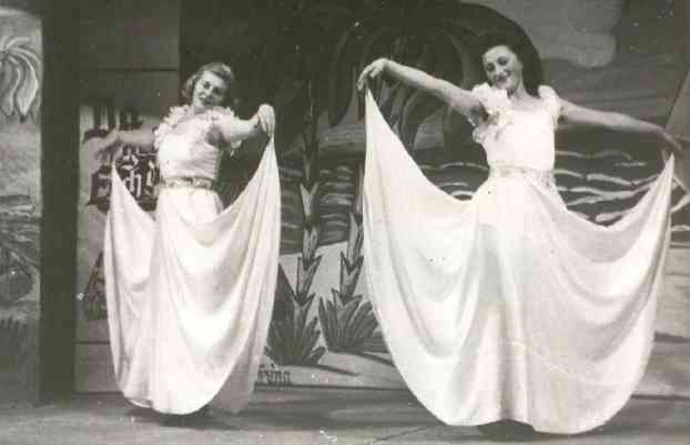 Manfred Trowe trouwde begin 1945 met een van zijn 'sterren', de Oostenrijkse Franziska Karban. Op de foto rechts voeren twee meisjes een act op op het gecamoufleerde dak van een latrine bij een van de torens van Teerose I. Op de achtergrond is een andere peiltoren te zien. Het meisje dat staat, is Eva Achleitner, solodanseres van het variétégezelschap. Na de oorlog trouwde Eva met de Engelsman Roy Watson, ze gingen in Londen wonen