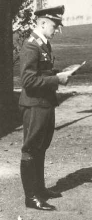 Kompanieleutnant Konrad W. Epperlein met op de achtergrond de heuvel Galgenberg van Terlet