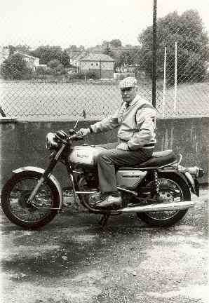 Tex op zijn favoriete vervoermiddel voor het hectische Londense verkeer, de Triumph