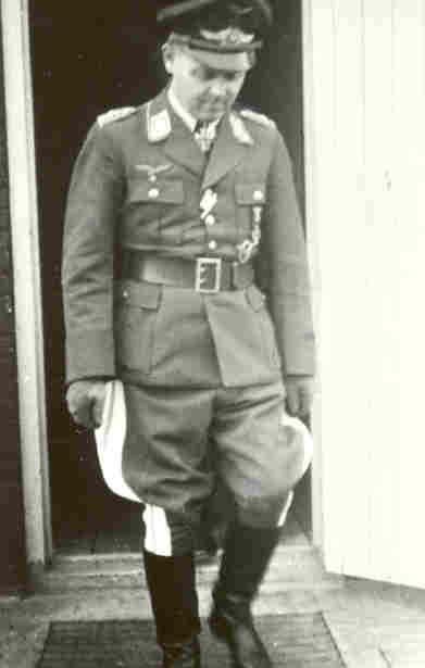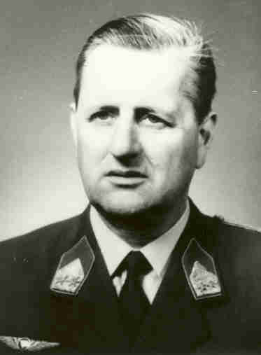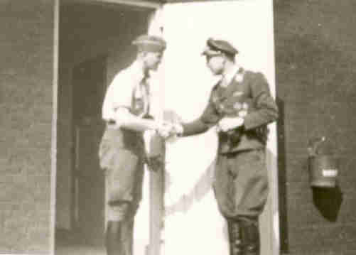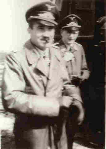 Foto links: Leutnant Karl Hammberger begroet bij de Auswertung van Teerose I de befaamde nachtjachtpiloot Helmut Lent. Foto rechts: Karl Hammberger als Oberleutnant van de Oostenrijkse luchtmacht, waartoe hij na de oorlog weer toetrad en waarin hij opklom tot de rang van Oberstleutnant (kolonel)