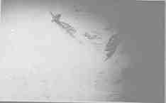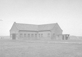 De Auswertung van Schneeglöckchen staat nog opvallend gaaf in de polder De Keins. Zelfs de uitbouw aan de rechter vleugel, die de verbindings vormde tussen het gebouw en de barakken, zit er nog aan (6.07.1989)