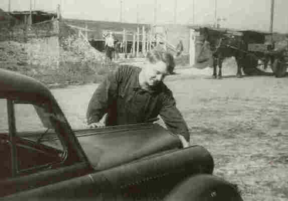 Terwijl Heinz Schmidt de dienstauto schoonmaakt, wordt achter zijn rug nog volop gebouwd aan de Schreibstube. Dit gebouw is het enige bouwwerk dat over is gebleven van Teerose I