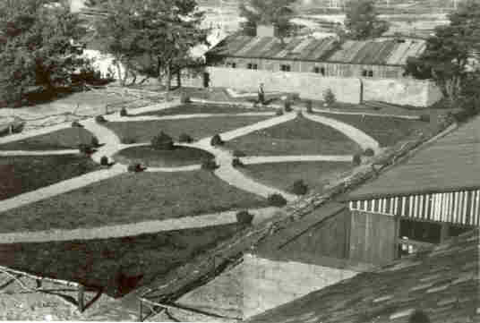 Links de Auswertung van Teerose II, rechts enkele barakken, beschermd door Splittermauer. Zo goed en zo kwaad het ging in het schrale gele zand, had men in de vele vrije tijd zelfs een tuintje aangelegd